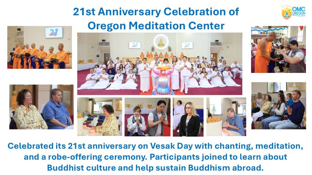 Located in Portland, Oregon, the Center serves as a place for Buddhist ceremonies, merit-making, ethical education, and especially the teaching of Dhammakaya meditation, a practice that guides practitioners to gently focus the mind at the center of the body to cultivate inner peace, clarity, compassion, and true happiness. All activities are conducted for the benefit of the community without discrimination and in accordance with religious and charitable purposes.