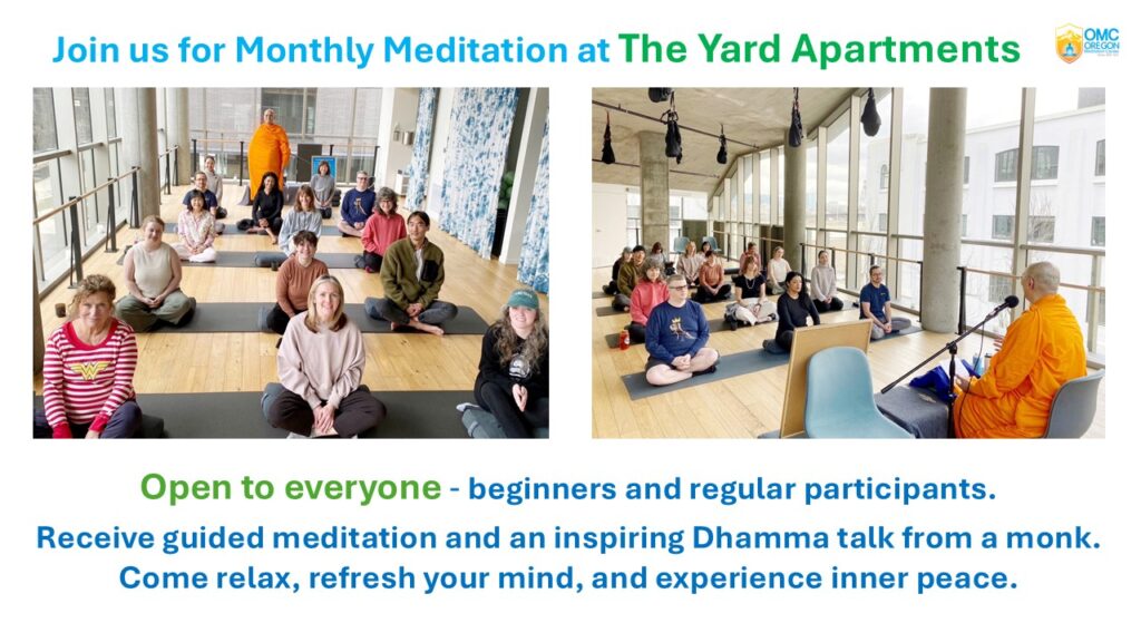 Oregon Meditation Center, also known as Wat Phra Dhammakaya Oregon, is a Thai Buddhist temple affiliated with the Thai Sangha Association of the United States and a branch of Wat Phra Dhammakaya, Thailand. Founded under the guidance of Luang Por Dhammachayo, it continues the mission of Luang Pu Wat Paknam to spread Theravāda Buddhism and the Dhammakaya meditation tradition.